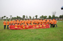 早上7點(diǎn)45分,參加拓展訓(xùn)練的40多名隊(duì)員乘坐大巴前往螺螄灣休閑文化園。抵達(dá)目的地稍作準(zhǔn)備后,隊(duì)員們在教練的帶領(lǐng)下,在歡快的游戲活動(dòng)中被隨機(jī)分成了兩隊(duì),并各自選定了組長,確定了隊(duì)旗、隊(duì)歌、口號(hào)等。 團(tuán)隊(duì)破冰建設(shè)后,拓展項(xiàng)目正式登場,首先進(jìn)行的是“激情150”和“智闖雷陣”,通過各隊(duì)隊(duì)員之間的有效溝通和相互協(xié)作,最終兩隊(duì)在上午的PK中以1:1的成績打?yàn)槠绞帧?br/> 下午的項(xiàng)目包括“驛站傳書”、“七巧板”和“繩圈動(dòng)力”!绑A站傳書”是將全體隊(duì)員分成四個(gè)小組,縱列而坐,將指定的信息(數(shù)字、文字或圖形)從最后一名隊(duì)員準(zhǔn)確地傳到最前面的隊(duì)員。本游戲分為五輪,要求隊(duì)員不準(zhǔn)發(fā)聲、不準(zhǔn)回頭、不準(zhǔn)移位等,而且每一輪的方法都不能重復(fù)。游戲開始前,大家集思廣益,分享好方法,最后取得了不錯(cuò)的成績。這個(gè)游戲告訴我們,在我們的實(shí)際工作中,信息的準(zhǔn)確傳遞離不開科學(xué)的謀劃、員工及時(shí)的反饋以及嚴(yán)格的執(zhí)行力,當(dāng)然也離不開每一位員工的積極配合,因?yàn)檫@傳遞過程中的每一個(gè)環(huán)節(jié)都至關(guān)重要。 “七巧板”是將隊(duì)員分為七個(gè)小組,要求七組隊(duì)員在35分鐘內(nèi)完成各自的任務(wù)。在這里,溝通的作用發(fā)揮到了極致,有效的溝通和分享不僅能合理優(yōu)化配置資源,還能提高辦事效率。最終我們完成了挑戰(zhàn),創(chuàng)下了記錄。 最后的“繩圈動(dòng)力”是充分發(fā)揮團(tuán)隊(duì)力量的項(xiàng)目,要求全體隊(duì)員用雙手拉緊繩圈,以便隊(duì)員在上面行走。開始時(shí)我們認(rèn)為一個(gè)人在上面行走都難以承受,最后卻經(jīng)受住了三個(gè)人同時(shí)在上面行走,項(xiàng)目的成功完成再一次告訴我們團(tuán)隊(duì)的力量是無窮的,只要團(tuán)隊(duì)中的每個(gè)成員心往一處想,勁往一處使,沒有什么困難是戰(zhàn)勝不了的! 下午16點(diǎn)30分,拓展訓(xùn)練活動(dòng)圓滿落下帷幕。 一天的時(shí)間是短暫的,留給我們每個(gè)人的體會(huì)和感悟卻是深遠(yuǎn)的。它留給我們的不僅僅是難忘的回憶,更多的是一種科學(xué)規(guī)劃的管理理念,一種通力協(xié)作的團(tuán)隊(duì)文化,一種群策群力的企業(yè)精神,一份更加積極的面對(duì)學(xué)習(xí)和工作的生活態(tài)度,以及必勝的勇氣和決心!讓我們一起凝心聚力,為實(shí)現(xiàn)共同的夢想努力奮斗吧!
